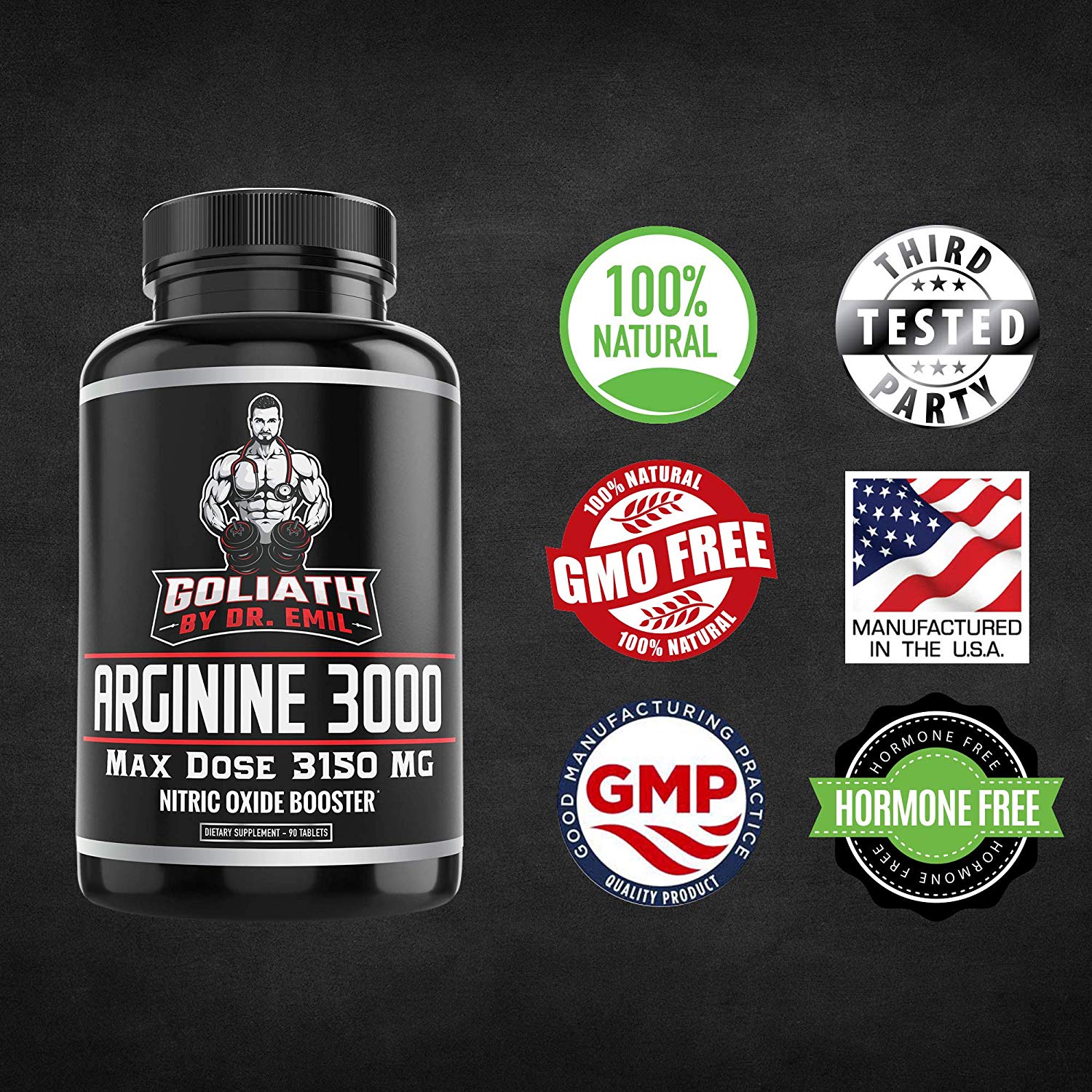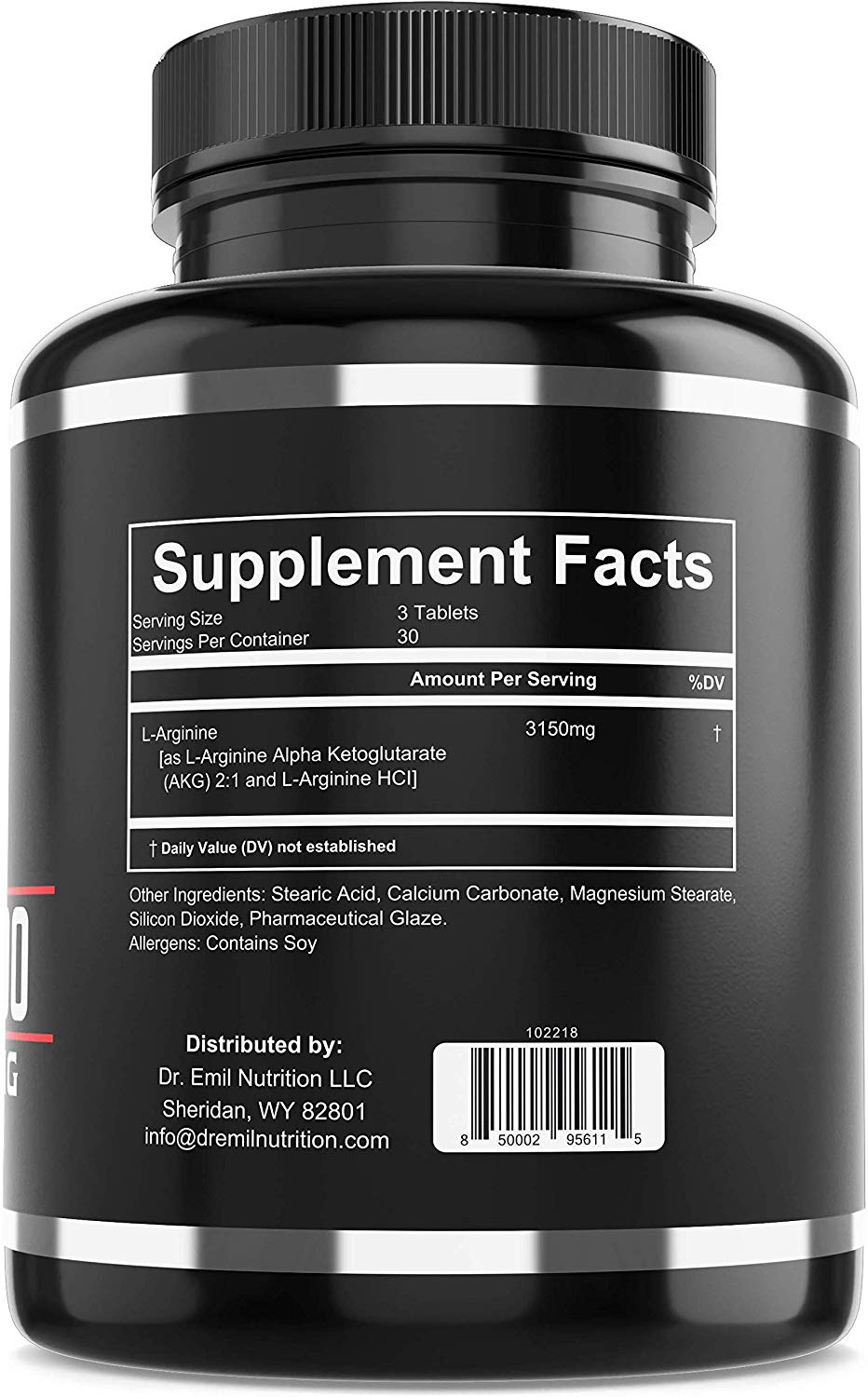 Dr. Emil - L Arginine (3150mg) Highest Capsule Dose - Nitric Oxide Supplement for Muscle Growth, Vascularity, Endurance and Heart Health (AAKG and HCL) - 90 Tablets
